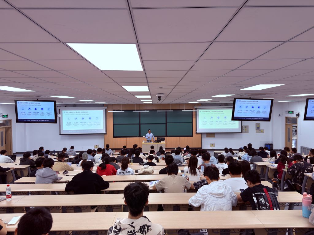 随后,孙玉泉以“级数思想与应用”为主题,为现场两百余名同学展开系统讲解。他从级数理论的发展脉络入手,结合典型例题拆解收敛与发散的判定规则,并深入剖析级数在微积分计算、工程分析中的具体应用,同时对常见概念混淆与计算误区进行了重点点拨。