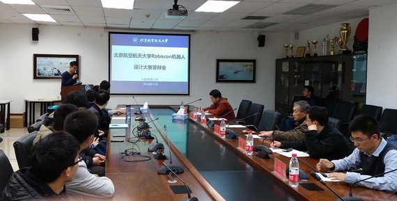 北航新闻网11月14日电(通讯员 张啸宇) 11月13日上午,我校首届Robocon机器人方案设计大赛暨北航机器人队技术报告会在新主楼A849举行。本次Robocon机器人方案设计大赛由共青团北京航空航天大学委员会主办、机械工程及自动化学院承办。本次大赛旨在引导广大学生开展创新实践与科学研究活动,培养大学生自主创新能力,大力营造有利于大学生健康成长和科技创新的良好氛围,同时为北航机器人队参加第十六届全国大学生机器人大赛征集优秀的设计方案。本次大赛首次举办,便获得了广大同学的积极参与,共有来自全校的10余支队伍参赛。大赛由函评和现场评审两个部分组成,经过初期函评,最终共8只队伍进入现场评审。