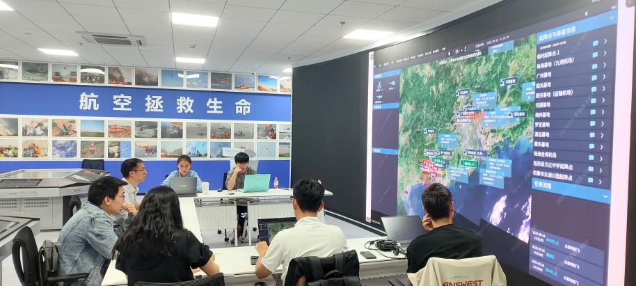 在抵达一线后,两位博士生与广东省应急管理厅应急支援和预案管理处、广东省防灾减灾中心相关负责同志及现场救援力量联合研讨方案。团队结合现场实际情况与前方需求,前后方密切协同,利用团队自主研发的航空应急救援数智辅助决策系统快速形成多套救援预案,为指挥部提供科学参考,助力空中救援行动的高效组织与实施。
