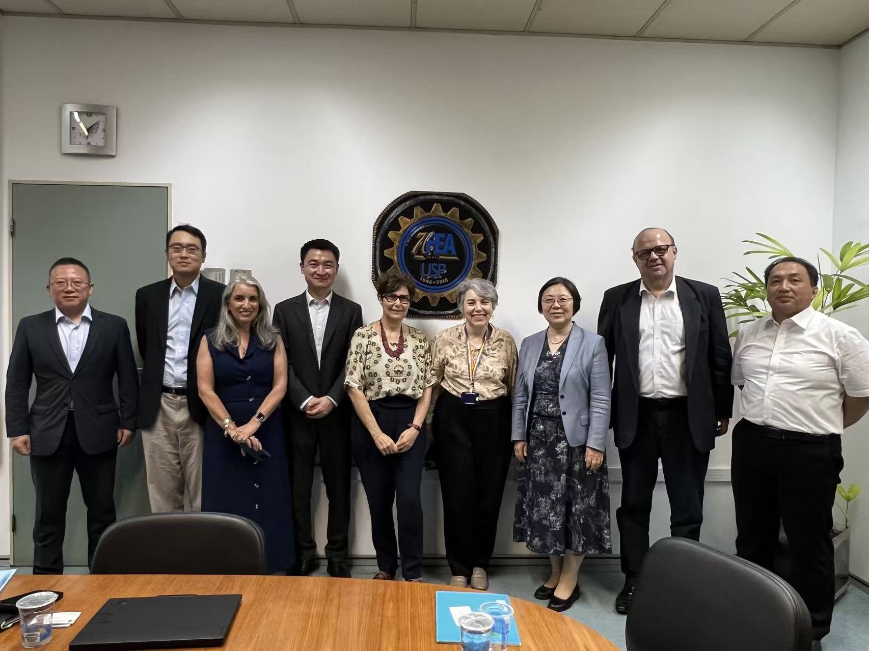在圣保罗大学(USP)访问期间,代表团访问了圣保罗大学经济和商学院,参观了学院的教学科研设施,圣保罗大学经济和商学院院长Maria Dolores Montoya Diaz、副院长Maria Sylvia Macchione Saes接待代表团并举办双边会谈。随后,代表团访问了圣保罗大学温室气体创新研究中心,与圣保罗大学温室气体创新研究中心副主任、温室气体项目组主任Emílio Carlos Nelli Silva,与圣保罗大学温室气体创新研究中心科研人员举办学术研讨会。教育部低碳治理与政策智能实验室主任助理衣博文代表教育部低碳治理与政策智能实验室介绍了我校经管学院气候变化、能源环境、低碳治理领域的科研方向和成果。圣保罗大学温室气体创新研究中心人力资源与沟通主管、圣保罗大学中国中心联络人也陪同参观了圣保罗大学的教学与科研设施。