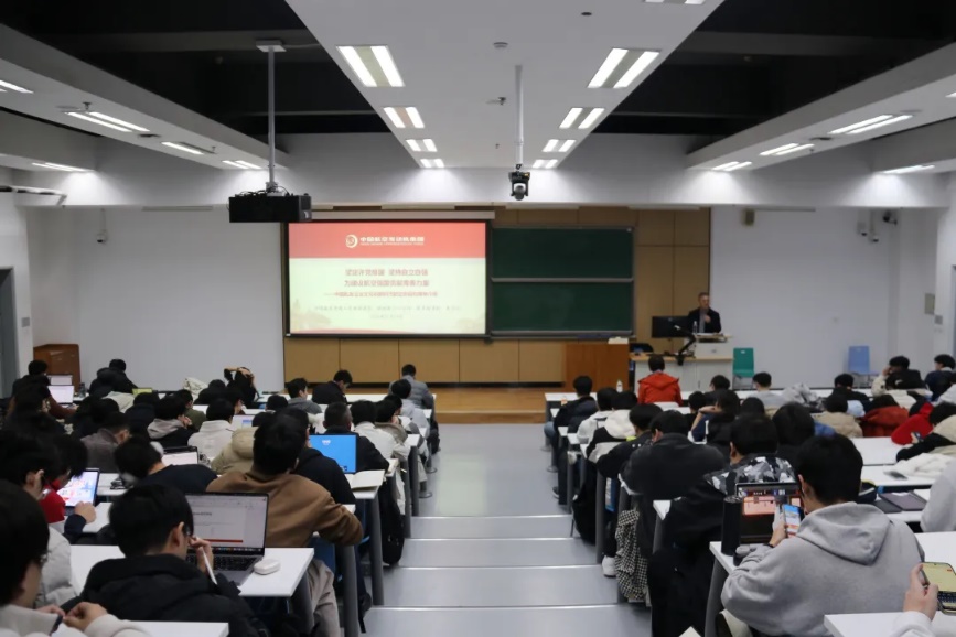 第八讲中,朱卫兵以《坚定许党报国,坚持自立自强,为建设航空强国贡献青春力量——中国航发企业文化与新时代航空发动机精神介绍》为主题展开讲座。从“文化是一个国家、民族的灵魂”这一深刻命题切入,引导同学们深入思考中国航发事业需要回答的三个根本性问题:“我们是什么、要干什么”、“从哪里来、到哪里去”、“过去为什么成功、未来怎样继续成功”。在此基础上,朱卫兵介绍了“2025年中国航空惊艳世界”的辉煌成绩,并系统回顾了为之奋斗的中国航空发动机事业发展历程,将文化精神与具体实践紧密相连。最后,朱卫兵发出“坚定许党报国、坚持自立自强、建设航空强国”的铿锵号召,激励同学们不忘初心、牢记使命,为强国梦想贡献青春力量。至此,2025年航空发动机行业文化讲座圆满收官。