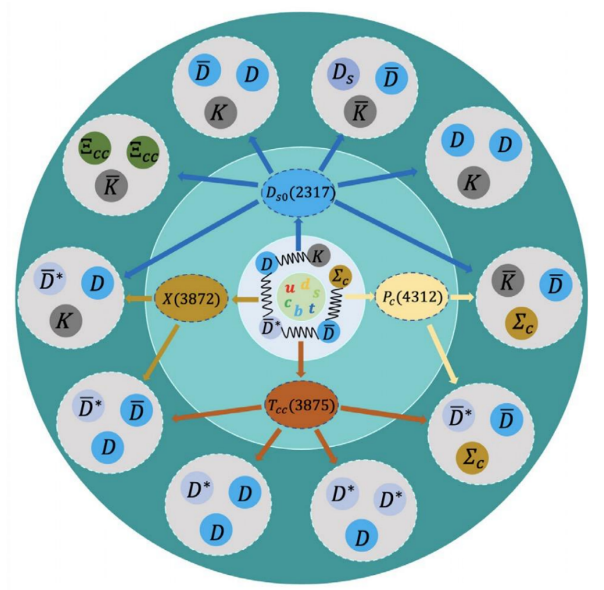 本次成果是耿立升教授团队在三强子系统研究领域的又一重要系统性进展。团队长期深耕奇特强子态与强相互作用多体系统理论研究,2018 年在国际上率先提出通过三强子系统揭示奇特强子态内部结构的研究范式,并围绕该方向开展了持续、系统的原创性研究,如图1所示。多年来,团队的系列成果获得国际学界高度认可:先后应邀在《Science Bulletin》《Physics Reports》等国际权威期刊撰写领域综述,系统梳理并引领领域发展方向;2025 年已在 PRL 发文,预言了具有特殊量子数(自旋 J=0、宇称 P=-1、电荷共轭宇称 C=-1)的