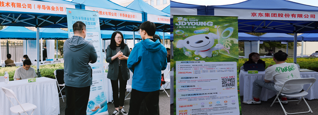 企业交流区人头攒动,华为技术有限公司、中国科学院微电子研究所、歌尔股份有限公司、北京华峰测控技术有限公司等数十家行业领军企业与科研院所齐聚展台。学子们携带简历踊跃咨询,一对一深入沟通岗位信息、行业趋势与企业文化。