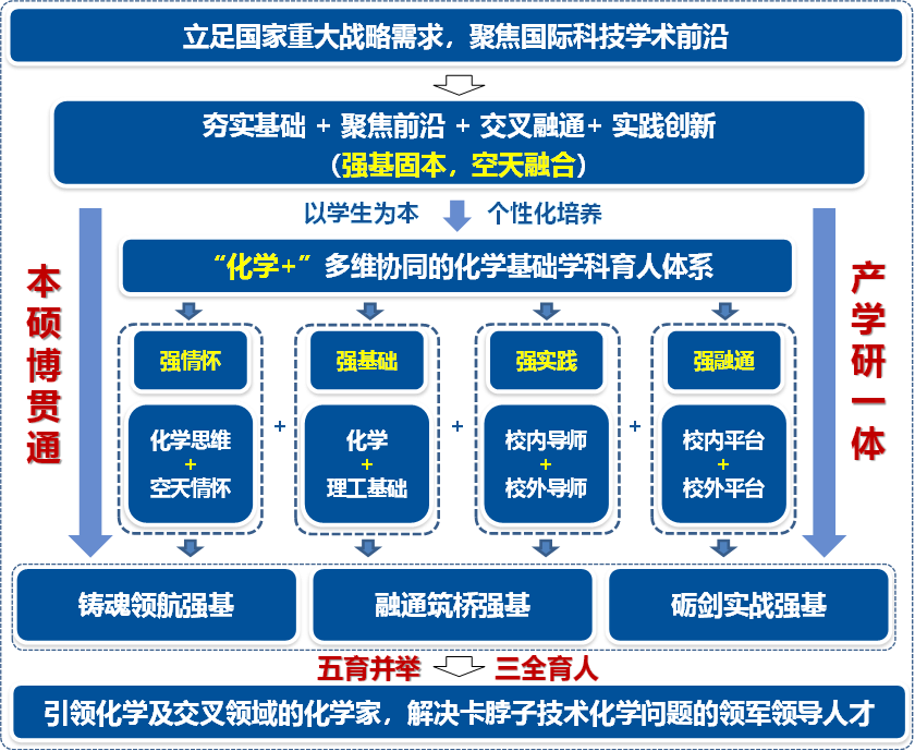 中国科学院院士、北航化学学院建院院长江雷教授曾这样阐明办院初心:"建设具有航空航天特色的国际一流化学学院,把一流学生培养为一流人才。"正是这句话,成为这所学院一切工作的逻辑原点。以"强基固本,空天融合"为核心理念,以"价值引领—交叉启智—实践创新"为三重支柱,一套聚焦化学拔尖创新人才的培养新范式,正在这里生根、生长。